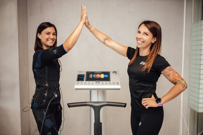 • PROFESJONALNĄ SALĘ TRENINGU EMS, która jest wyposażona w najlepszą na świecie markę tworzącą tego typu sprzęt MihaBodytec®. Sprzęty tej marki są również sprzętami medycznymi, dzięki czemu cieszą się popularnością wśród światowej klasy gwiazd na całym świecie. Jest to sprzęt najwyższej półki. Treningi EMS w iFitt poprowadzą międzynarodowi trenerzy z szkoleniami Glucker Kolleg®. iFitt posiada możliwość skorzystania z EMS w parach! Zobacz czym jest indywidualny trening EMS klikając w: link.
