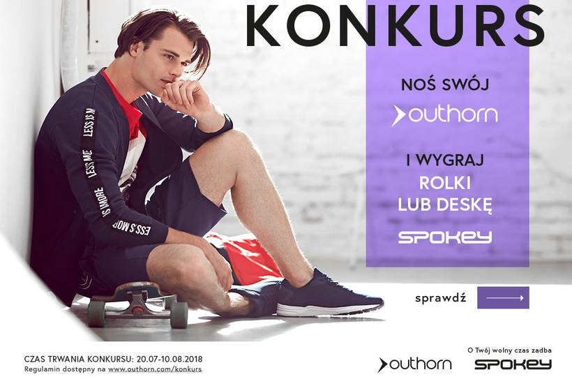Kochasz aktywność na świeżym powietrzu? Jeździsz na rolkach, desce, a może uprawiasz inną dyscyplinę sportu? Najlepiej czujesz się w wygodnych i dopasowanych do sylwetki ubraniach? Jeśli na wszystkie trzy pytania odpowiedziałeś TAK, to najnowszy konkurs marki Outhorn zorganizowany wraz z firmą Spokey jest właśnie dla Ciebie. Wygraj vouchery na ubrania, sprzęt i akcesoria sportowe o łącznej wartości 550 zł!