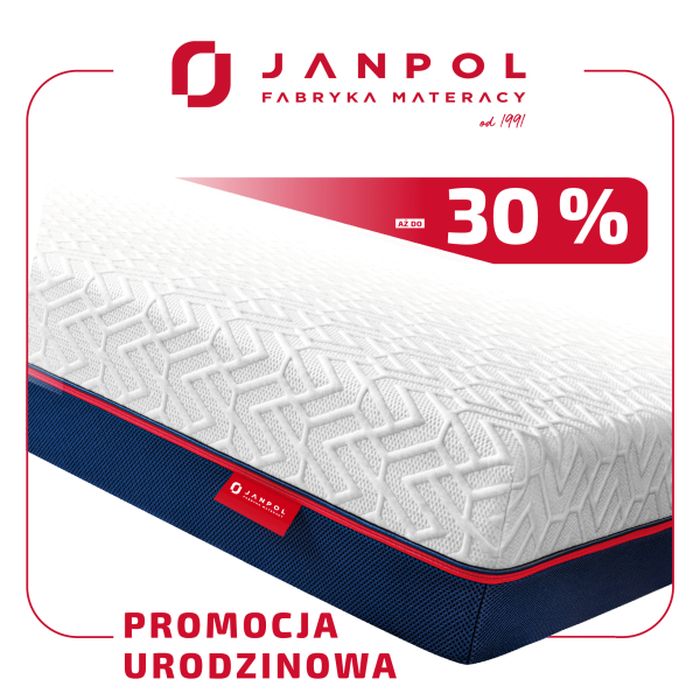 Zapraszamy do skorzystania z promocji na 30 urodziny Janpolu. Z tej okazji materace z rabatem 10, 20 a nawet 30%.
