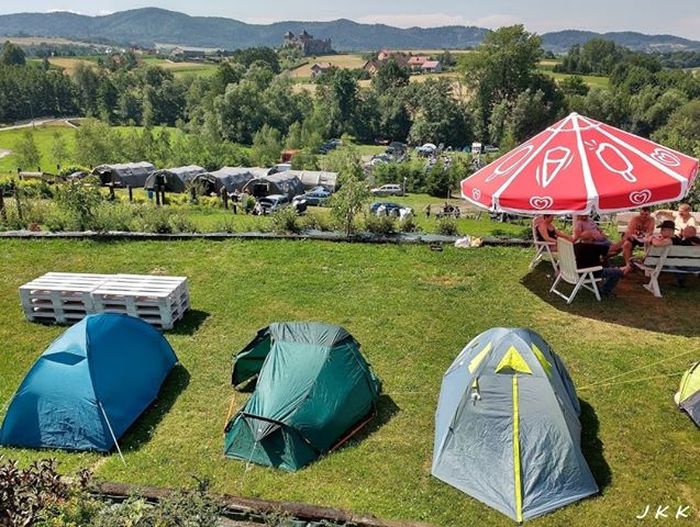 Nasza oferta obejmuje wynajem terenu pod namiot/camper. Pole namiotowe/campingowe znajduje się na terenie ogrodzonego ośrodka z dostępem do zasilania elektrycznego i bieżącej wody. Na polu namiotowym/campingowym są również paleniska, na których można usmażyć kiełbasę, karczek, zrobić ziemniaki. Mamy kilkanaście palenisk stworzonych w różnym klimacie: np. brzozowy raj, łysa polana, paletowy zakątek, bacówkowe grillowanie, strumykowe zacisze, zielony gaj, niezwykły zakątek. Dla zachęty zdradzimy, że są np. hamaki dla leniwych i lubiących bujać w obłokach.. Paleniska są rozsiane po całym naszym terenie, więc zapewniamy prywatność! Nasze paleniska to wspaniałe miejsce na spotkanie z rodziną, ze znajomymi, na randkę.