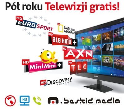 Szczegóły oferty firmy Beskid Media dostępne są na stronie internetowej www.beskidmedia.pl oraz w biurze Obsługi Klienta pod nr (33) 484 19 19 lub w punktach obsługi klienta Kęty ul. Sienkiewicza 14 oraz Wadowice ul. Lwowska 19.