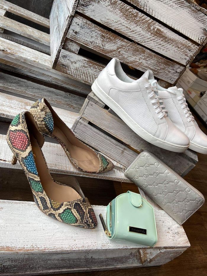 W sklepie oprócz obuwia damskiego i męskiego także bardzo duży wybór torebek, portfeli skórzanych i pasków.