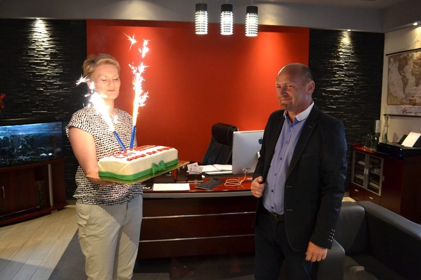 W bieżącym roku zyskał wyjątkowe znaczenie, bowiem dokładnie tego dnia przypadł Jubileusz 25-lecia istnienia tej zatorskiej firmy, zajmującej się głównie handlem polskim węglem (w każdym sortymencie), produkcją i sprzedażą wysokokalorycznych eko-groszków – także drogą internetową (na stronie www.ekogroszekplus.pl) – oraz dostawą maszyn budowlanych światowych marek. Z tej okazji, wszyscy pracownicy naszego przedsiębiorstwa zebrali się we wtorek 6 czerwca w siedzibie firmy, aby wspólnie odśpiewać gromkie „Sto lat” oraz przekazać okolicznościowy tort na ręce Prezesa spółki – Adama Kosowskiego.