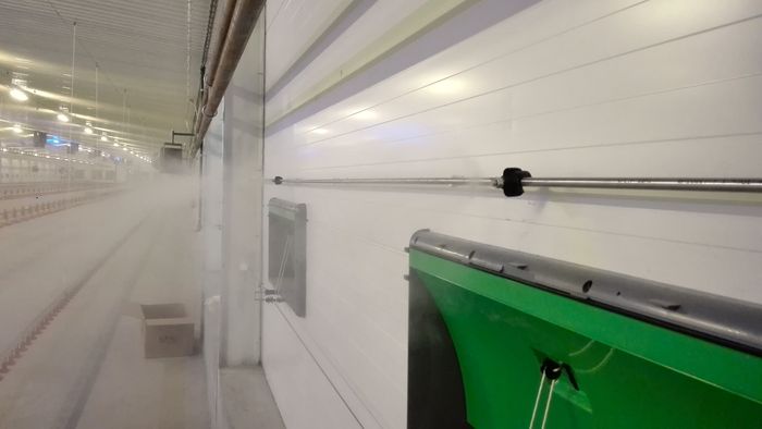 Podstawą układu schładzania kurnika jest wydajna wentylacja, systemów zamgławiania stanowi jedynie jej rozwiniecie i uruchamiany jest w sytuacjach kryzysowych czyli ekstremalnie wysokich temperaturach. Wentylacja mechaniczna pozwala na kontrolowane wymiany powietrza, co jest kluczowe w utrzymaniu odpowiednich warunków środowiskowych. Systemy te muszą być zintegrowane w centralnym komputerze klimatycznym który za pomocą czujników temperatury i wilgotności steruje całością urządzeń w obiekcie. Wszystkie procesy zachodzą automatycznie, co umożliwia automatyczne sterowanie przepływem powietrza i kontrole klimatu w kurniku w zależności od aktualnych warunków.