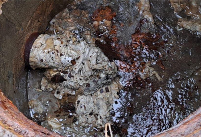 – włosów, bandaży, materiałów opatrunkowych, szmat, rajstop – zawierających włókna naturalne i syntetyczne, nierozpuszczające się w wodzie, które zbijają się w zwartą masę, łączą się w sploty, uniemożliwiają swobodny przepływ ścieków,