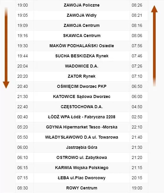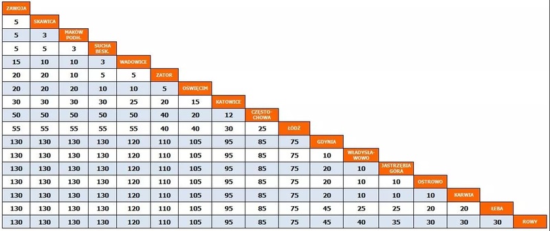 Poniżej prezentujemy tabelę ze szczegółowym cennikiem na linii Zawoja – Rowy.
