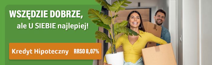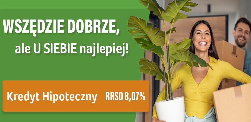 Marzenie o własnym miejscu na ziemi jest bliżej, niż myślisz. Atrakcyjny Kredyt Hipoteczny RRSO 8,07% pozwoli Ci już dziś zrealizować swoje plany o zakupie wymarzonego domu lub mieszkania. Nasza propozycja została stworzona z myślą o osobach, które cenią sobie bezpieczeństwo, elastyczność i przejrzystość warunków kredytowania. Wymagany wkład własny już od 10%!