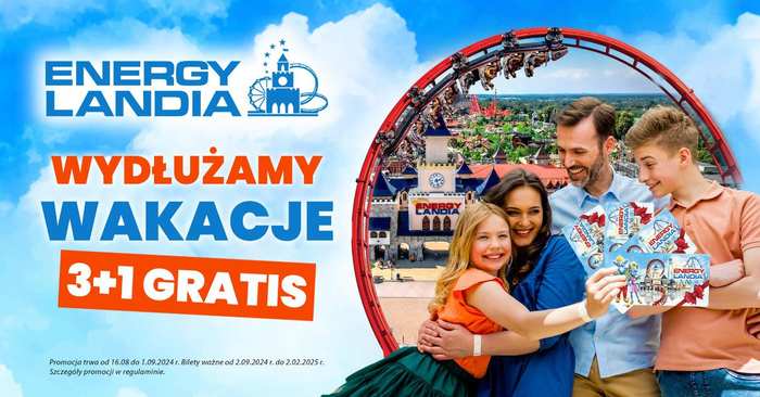 Energylandia, największy Park Rozrywki w Polsce, przygotowała niesamowitą promocję dla wszystkich fanów mocnych wrażeń i rodzinnej zabawy. Od 16 sierpnia do 1 września 2024 roku trwa promocja ,,Wydłużamy wakacje’’, dzięki której każdy, kto zakupi cztery bilety, zapłaci tylko za trzy z nich! To świetna okazja, by zaplanować wizytę w tym magicznym miejscu i cieszyć się emocjonującymi atrakcjami w gronie najbliższych.