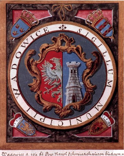 Zobacz jak wyglądał herb Wadowice przed zmianą w 1938 roku: