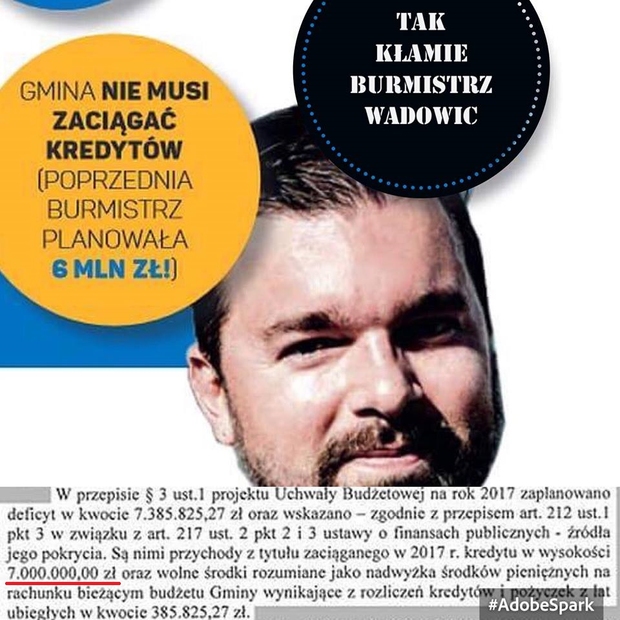 Klinowski biuletynkiem prawdę ci powie? No to proszę, tak wygląda z podatków opłacona gówno prawda burmistrza Wadowic. Miało nie być kolejnych kredytów i co więcej, dotychczasowe zadłużenie spłacone? Ewa Filipiak planowała 6 mln? Klinowski zaplanował 7 mln. Urzędowe Radio Erewań znowu nadaje – napisał krytycznie o działaniach burmistrza Marcin Gładysz.