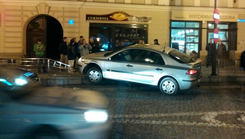 Dokładnie 17 stycznia kierowca renaulta chciał przejechać przez centralny plac miasta na skróty i w efekcie jego auto wylądowało na balustradzie odgradzającej chodnik od ulicy. Zniszczeń, jakich dokonał, do dziś nie udało się usunąć. Zdewastowany fragment otoczono przenośnymi barierkami i obwiązano taśmą. Całość nie wygląda dobrze na tle nowego rynku.