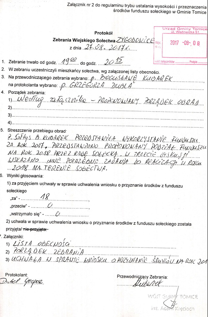 Protokół oficjalnie wpłynął na dziennik podawczy do Urzędu Gminy w Tomicach 8 września 2017 roku i został opublikowany przez jednego z urzędników na oficjalnych stronach Biuletynu Informacji Publicznej. Po drodze nikt nie zauważył?