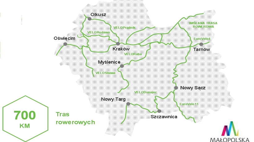 Licząca 50 km trasa pobiegnie od Suchej Beskidzkiej przez gminy Zembrzyce, Mucharz, a następnie przez Wadowice aż na północ w kierunku Oświęcimia, a stąd do granicy województwa śląskiego. Budowa tej trasy ma się rozpocząć w 2016 roku. Przypomnijmy. Część tej ścieżki, śladem po dawnym torowisku Wadowice wybudowały w 2014 roku.
