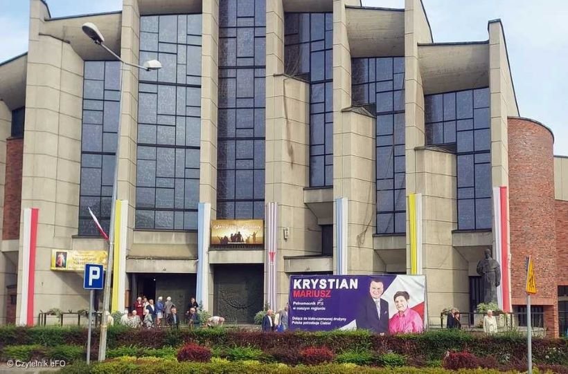 Duży baner Mariusza Krystiana, wójta Spytkowic, pojawił się centralnie przed wejściem do kościoła św. Maksymiliana Kolbe. W mediach społecznościowych pod zdjęciami banerów internauci krytycznie skomentowali taką reklamę wyborczą.