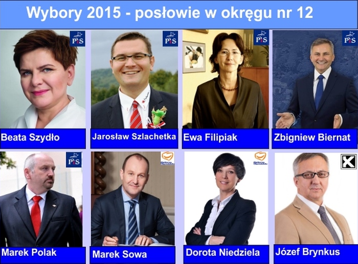 Przypomnijmy, że w tych wyborach posłami w okręgu nr 12, w którego skład wchodzi powiat wadowicki zostali Beata Szydło, Jarosław Szlachetka, Ewa Flipiak, Zbigniew Biernat, Marek Polak z PiS oraz Marek Sowa, Dorota Niedziela z PO, a także Józef Brynkus z Kukiz15.