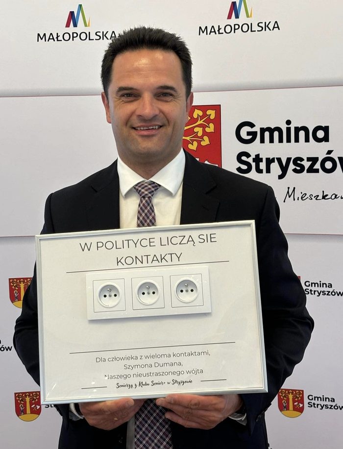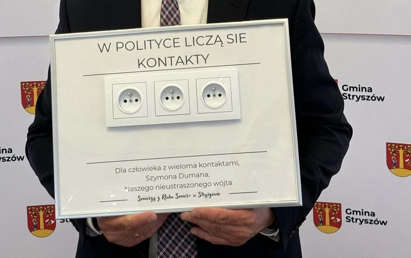 Szczególnie zabawną formą poparcia wyrazili się seniorzy z Klubu Seniora w Stryszowie, którzy podarowali wójtowi tabliczkę z kontaktami. Dlaczego? Bo jak sami napisali ” w polityce liczą się kontakty”, a wójt jest „nieustraszony” i ma wiele kontaktów.