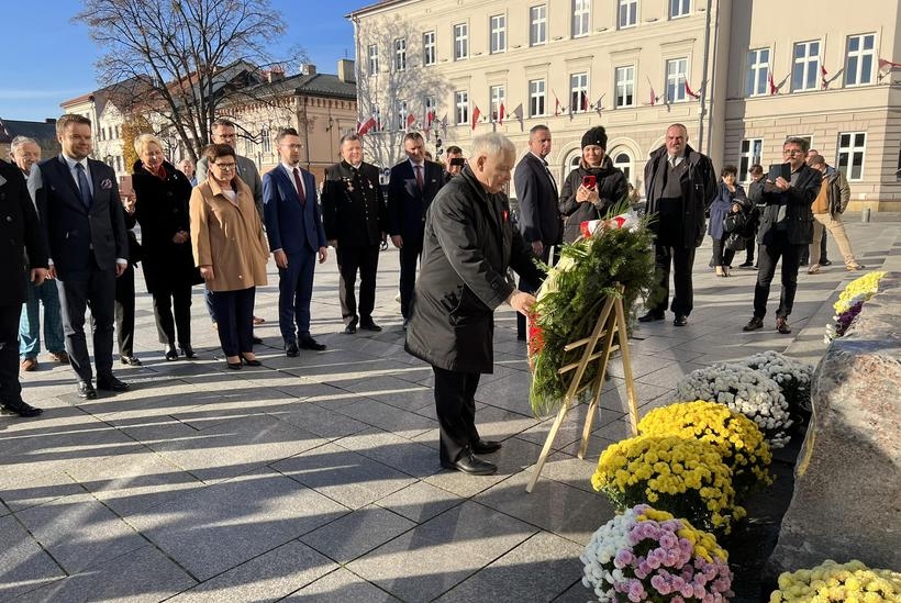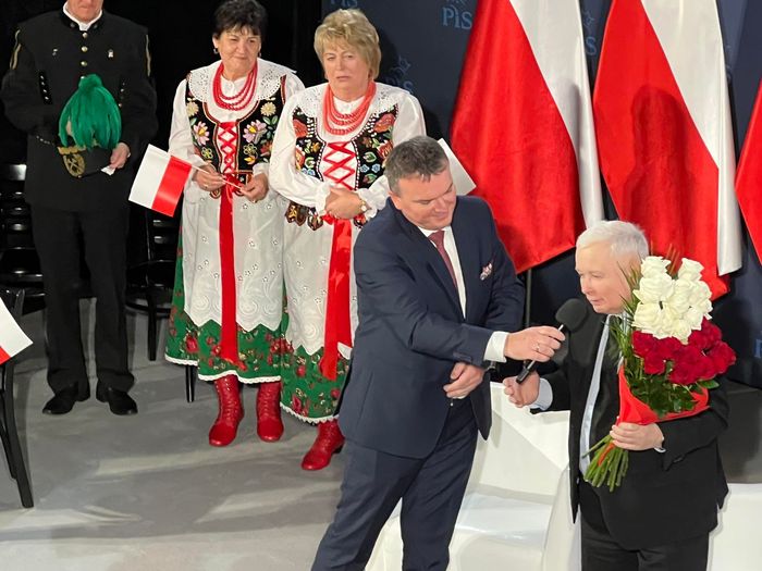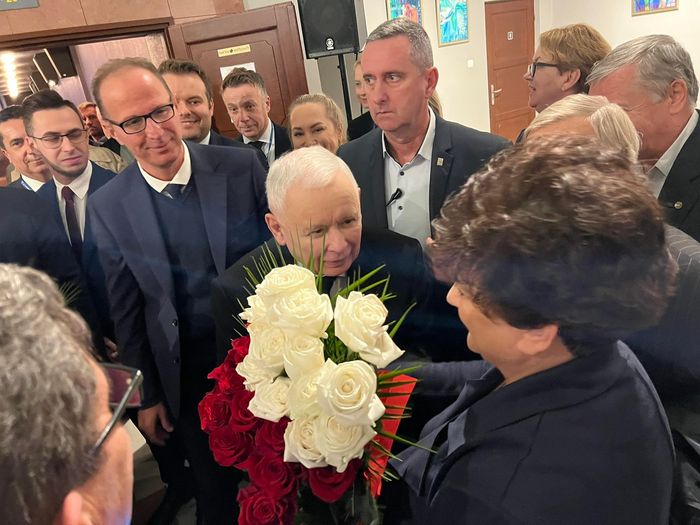Wcześniej, Jarosław Kaczyński złożył kwiaty pod pomnikiem papieża na wadowickim rynku. Prezesowi towarzyszyli przedstawiciele lokalnych struktur partii, m.in. Filip Kaczyński (PiS), Mariusz Krystian (PiS) oraz burmistrz Wadowic Bartosz Kaliński (PiS).