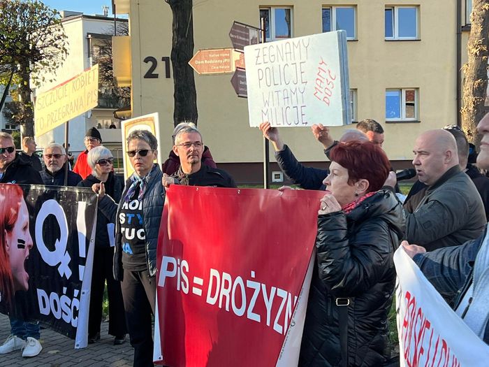 Jednocześnie podczas wizyty prezesa przed budynkiem Wadowickiego Centrum Kultury pojawił się też „komitet powitalny”, czyli grupa osób sprzeciwiająca się polityce obecnego rządu. Na trzymanych afiszach można było przeczytać takie hasła jak ” za Polskę w ruinie, będziesz siedział sk….nie”.