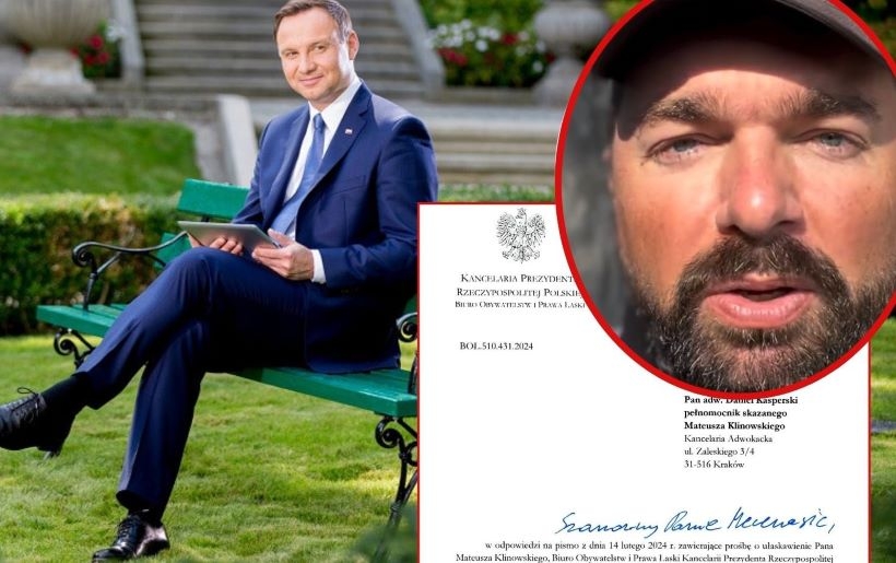 Prezydent Andrzej Duda odmówił ułaskawienia radnego Mateusza Klinowskiego. Jak poinformował lokalny polityk, jego sprawa została przekazana zgodnie z procedurą do Prokuratora Generalnego.