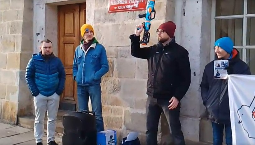 Mieli ze sobą transparenty z hasłami „Murem za Kasią Wójtowicz”, „Nie uciszycie nas – dość milczenia”, głośniki, mikrofony oraz… zabawkowy granatnik. Ich zdaniem policja, będąc na pasku prawicowych polityków, prześladuję aktywistkę i uczyniła z niej kozła ofiarnego.