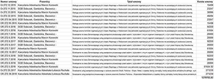 • Łączna suma 21 umów z prawnikami przekroczyła 1,2 miliona złotych.