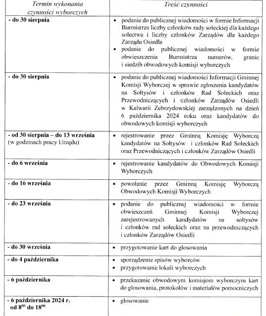 Wybory odbędą się w 13 kalwaryjskich sołectwach. Zgodnie z uchwałą Gminnej Komisji Wyborczej zgłoszenia kandydatów na sołtysów i członków rad sołeckich oraz przewodniczących i członków zarządów osiedli, a także kandydatów na członków obwodowych komisji wyborczych będzie można dokonać od 30 sierpnia do 13 września.