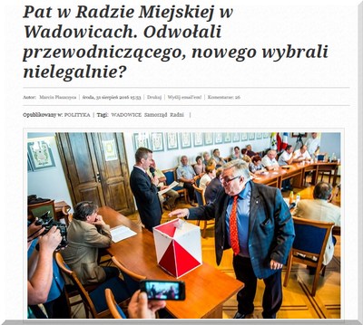 Przypomnijmy. W dniu 31 sierpnia ubiegłego roku Rada Miejska w Wadowicach podjęła uchwałę o odwołaniu swojego przewodniczącego Józefa Cholewkę. Kolejną uchwałą wybrała nowego Roberta Malika.