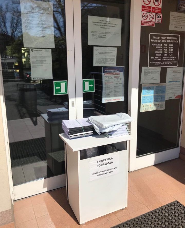 W związku z obowiązującym na obszarze Rzeczypospolitej Polskiej stanem epidemii, kierując się dobrem zarówno klientów, jak i pracowników samorządowych Starostwo Powiatowe w Wadowicach nie prowadzi bezpośredniej obsługi klientów. Niniejsza decyzja obowiązuje do odwołania. Kontakt ze Starostwem Powiatowym w Wadowicach odbywa się z wykorzystaniem komunikacji elektronicznej, telefonicznej, korespondencji tradycyjnej oraz skrzynki podawczej umieszczonej przed budynkiem Starostwa przy ul. Batorego 2 w Wadowicach, wyłącznie w celu realizacji zadań niezbędnych do zapewnienia pomocy obywatelom – poinformował we wtorek starosta wadowicki Eugeniusz Kurdas.