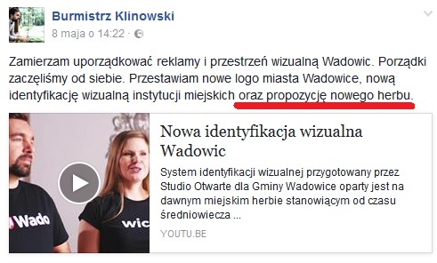 Ale zaraz… o tym, że herb będzie zmieniany, wiemy przecież od samego burmistrza, który chwalił się tym na Facebooku dwa tygodnie temu.