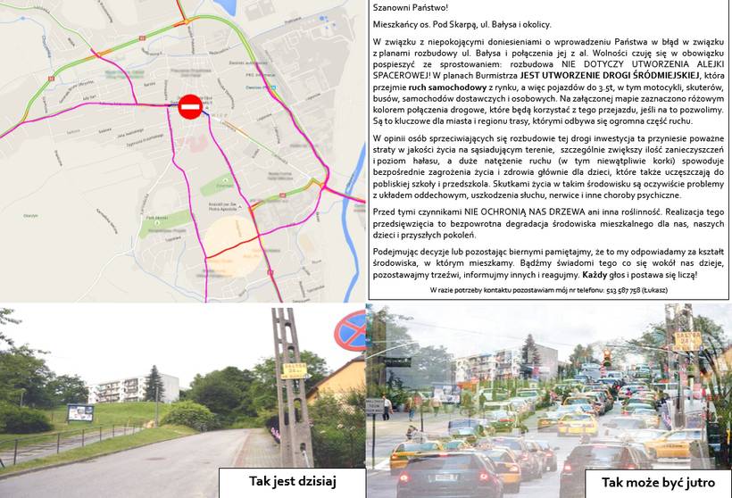 Ulotka o nowej drodze śródmiejskiej, autor Łukasz Babieno