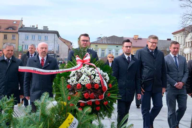 Wojewoda w Wadowicach składa kwiaty pod pomnikiem papieża. Zapowiada banner na urzędzie