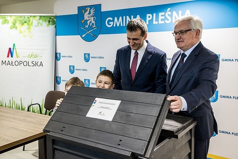 Pierwszy pokazowy kompostownik został przekazany gminie Pleśna, która jako pierwsza złożyła wniosek w programie. Będzie wykorzystywany w tamtejszym przedszkolu publicznym im. Władysławy Majak i posłuży także edukacji ekologicznej najmłodszych.