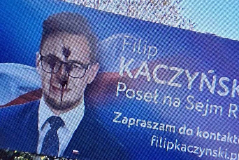 Banery z wizerunkiem posła Filipa Kaczyńskiego, który kandyduje do Sejmu z listy Prawa i Sprawiedliwości zostały ponownie zniszczone. Tym razem ostrzelano wizerunek posła kulkami paintballowymi.