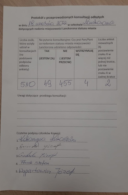 Przeprowadzenie konsultacji było warunkiem do złożenia wniosku do Rady Ministrów o zmianę statusu wsi na miasto. W III Rzeczpospolitej jeszcze się nie zdarzyło, by rząd odmówił gminie zmiany statusu ze wsi na miasto, jeśli mieszkańcy tego chcieli. Tyle tylko, że w Lanckoronie tego nie chcą.
