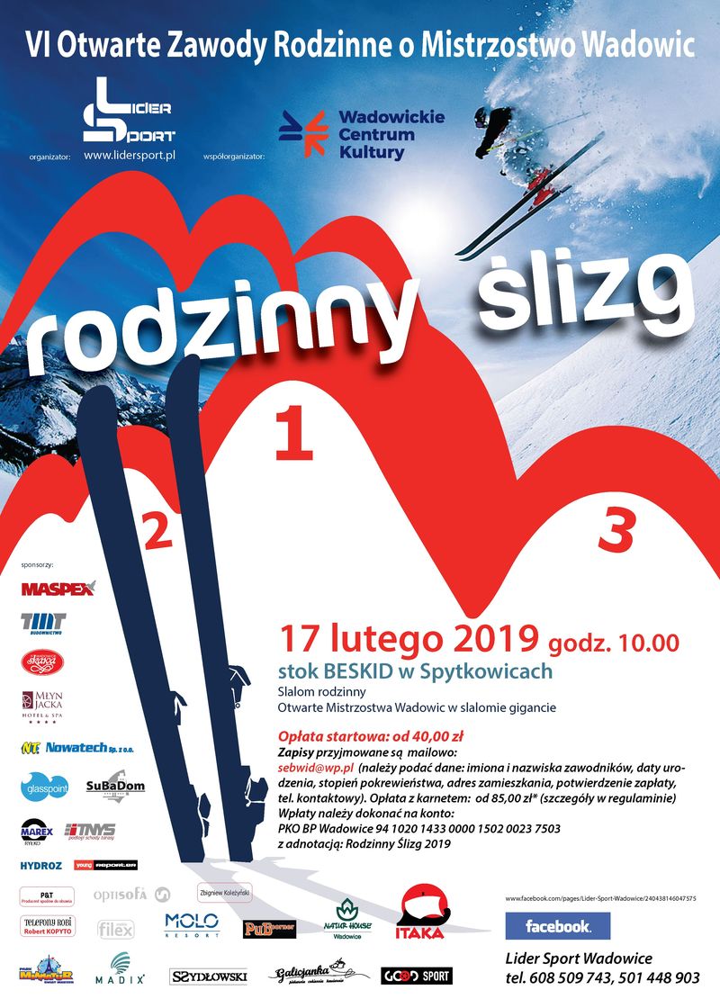 Już po raz szósty Lider Sport wraz z Wadowickim Centrum Kultury zapraszają na otwarte zawody narciarskie dla rodzin. Narciarze walczyć będą też o mistrzostwo Wadowic w slalomie gigancie.