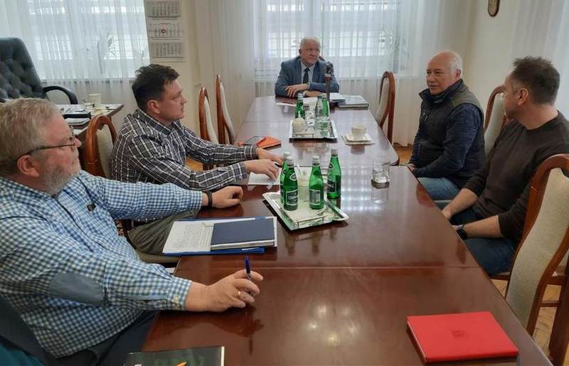 Burmistrz Kalwarii Zebrzydowskiej rozmawia z grupą pasjonatów hokeja o rozbudowie Białego Orlika, tak, aby mogły się tam odbywać mecze.