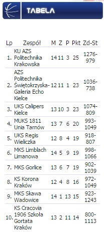 W pojedynku przedostatniej w tabeli Skawy Wadowice z liderującą Politechniką Krakowską nie mogło być mowy o niespodziance. Już po pierwszej kwarcie krakowianie prowadzili dwunastoma punktami, a w drugiej kwarcie podwyższyli przewagę o kolejne dziewięć oczek. Wadowiczanom nie można było odmówić walki, grali poprawnie w obronie, ale w ataku nie potrafili znaleźć sposobu na zdyscyplinowaną defensywę gości. Ostatecznie przegrali 47:78.
