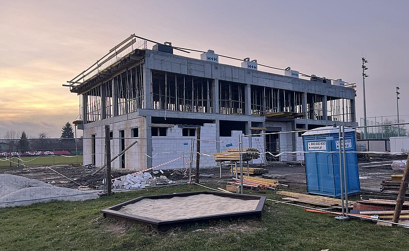 Przy głównym boisku stadionowym powstaje budynek, który ma spełniać oczekiwania sportowców i zakończyć trwającą kilkadziesiąt lat prowizorkę. Dotychczas siedzibą kluby były baraki, które służyły zawodnikom jako szatnie.