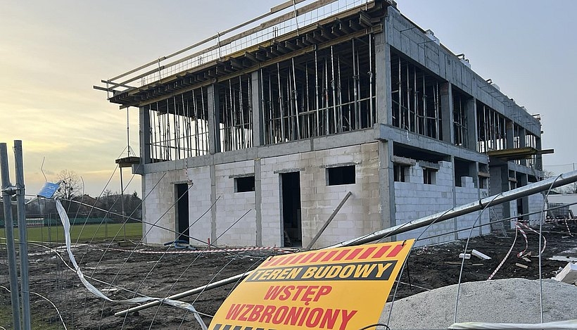 Nowa siedziba Skawy Wadowice pnie się w górę. Z tarasu będzie można oglądać mecze