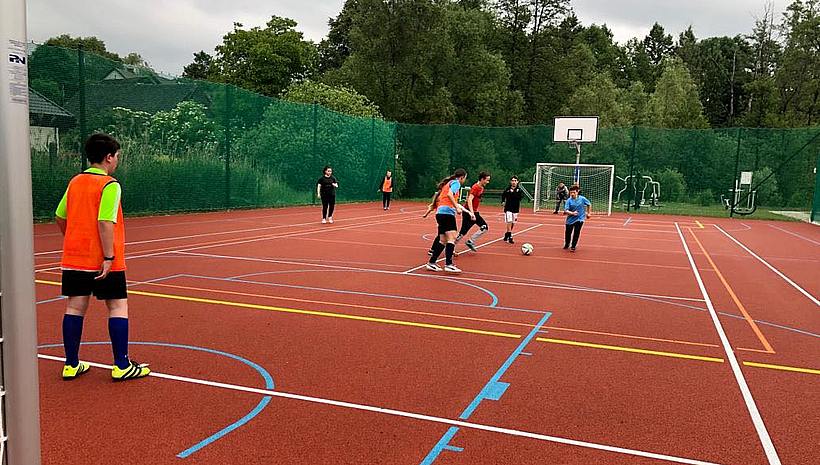 Na terenie nowego boiska, pokrytego nawierzchnią poliuretanową, znalazły się kosze do koszykówki, słupki do gry w siatkówkę i w tenisa ziemnego oraz bramki piłkarskie. Całość o wymiarze 34,77 x 19 m otoczona jest piłkochwytami. Obok znajduje się również utwardzony kostką brukową plac do organizacji imprez plenerowych.