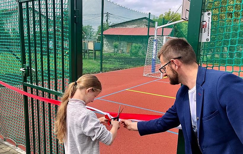 Nowe boisko w Rokowie w końcu otwarte. Dzieci nastrzelały bramek burmistrzowi