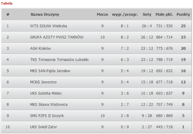 Po tej porażce Skawa spadła na ósme miejsce w tabeli.