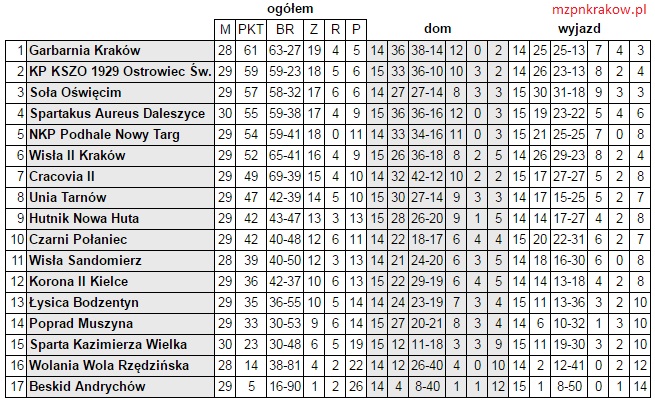 Jeśli bowiem mistrz III ligi także nie wygra barażu o awans, do IV ligi oprócz zespołów z miejsc 9-16, wyleci także ósma drużyna (w tej chwili Unia Tarnów), nad którą oba krakowskiej zespoły mają odpowiednio pięć i dwa punkty przewagi.