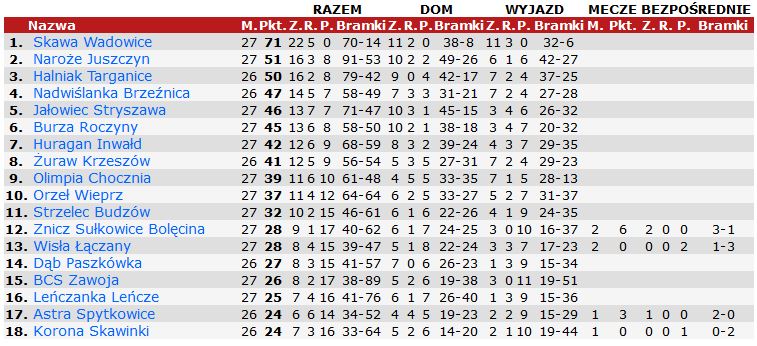Skawa ma obecnie 20 punktów przewagi i jeszcze siedem kolejek do rozegrania w czerwcu. Szansa, że drużyna, która nie przegrała w tym sezonie ani jednego meczu, przegra kolejne siedem, jest tylko matematyczna.