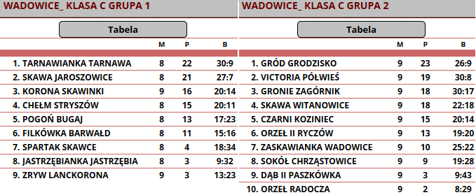 TABELA I i II GRUPY C KLASY (ozpnwadowice.pl):