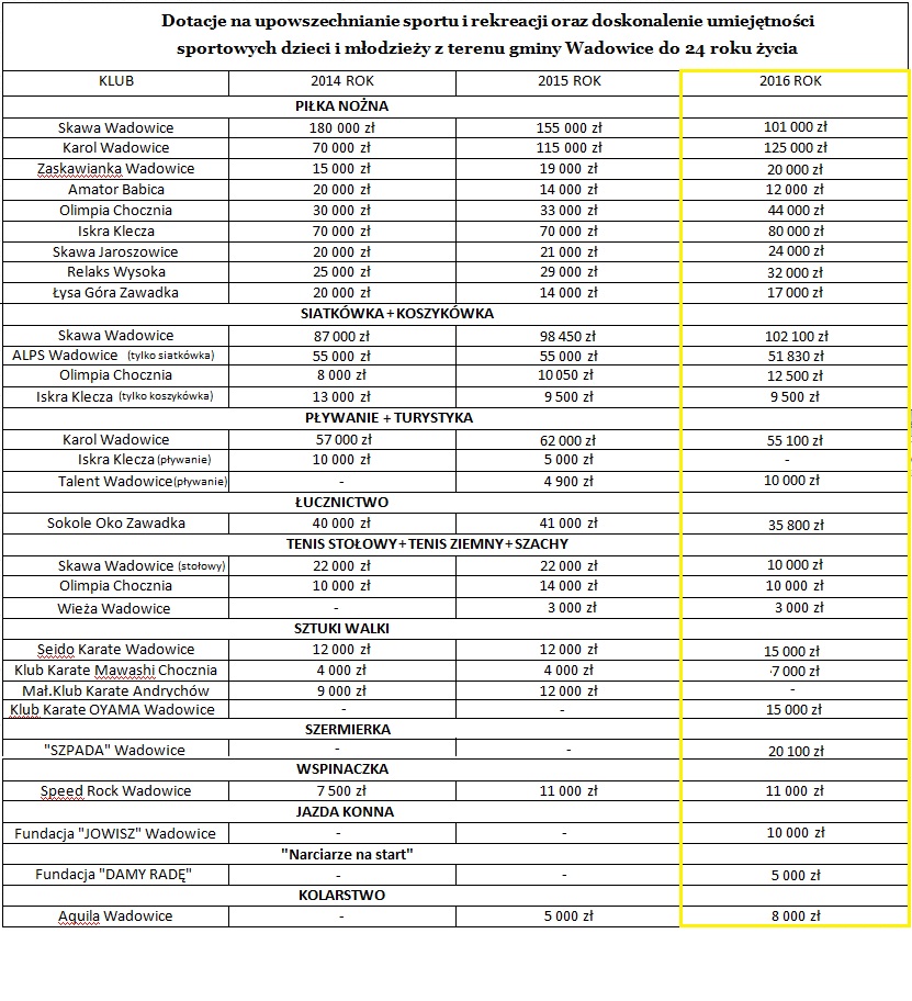 A jak zmieniła się sytuacja w innych klubach? Całkiem sporo na start, bo 35 000 złotych zgarnęły nowe organizacje – Szpada Wadowice oraz dwie fundacje – „Damy Radę” i „Jowisz”.