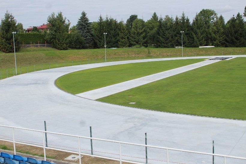 Właśnie rozpoczął się najważniejszy etap tej inwestycji, czyli położenie nawierzchni. Wcześniej, zgodnie z harmonogramem zaplanowanych prac, przemodelowano łuki bieżni, zamontowano oświetlenie i kamery monitoringu.