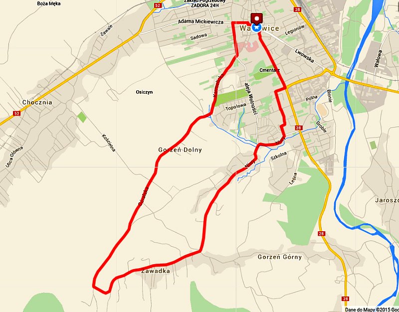 Trasa Biegu Wadowickiego rozpoczynać i kończyć będzie się na rynku w Wadowicach, skąd biegacze wyruszą w stronę Choczni ulicą Karmelicką, następnie przez Zawadkę oraz ulicę Niwy, i pobiegną z powrotem do centrum aleją Matki Bożej Fatimskiej.