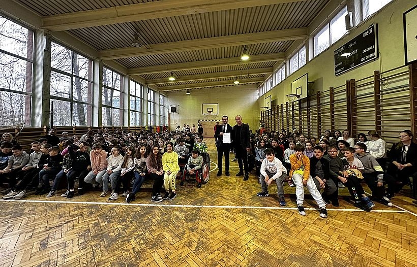 W obecności uczniów i nauczycieli podpisałem umowę na wykonanie projektu technicznego nowej inwestycji. Zakres prac obejmuje: rozbiórkę istniejącej sali gimnastycznej i budowę nowej hali sportowej połączonej z budynkiem szkoły przewiązką. W hali znajdą się trybuny na ok. 500 miejsc oraz pełnowymiarowe boiska do: piłki ręcznej, koszykówki (z koszami opuszczanymi z sufitu), siatkówki oraz futsalu – poinformował w czwartek burmistrz Wadowic Bartosz kaliński.