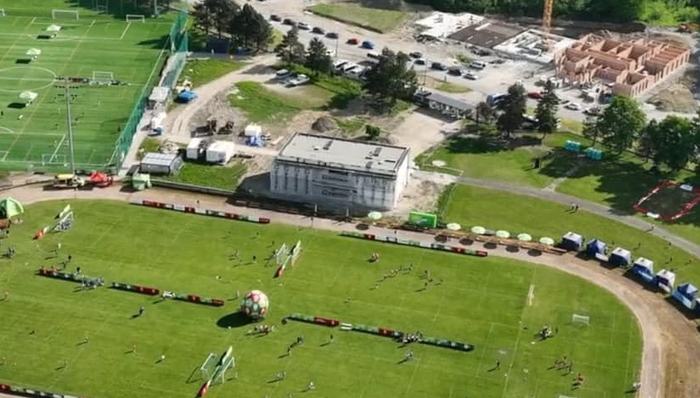 Widok z piętra na boisko robi wrażenie. Weszli na budowę i… musieli to pokazać